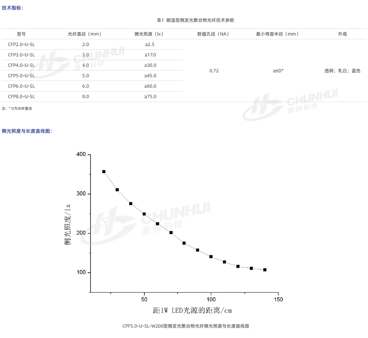 耐溫型側(cè)發(fā)光聚合物光纖可在-40~105℃溫度下使用;
